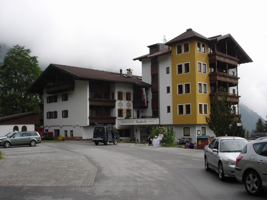 Bei Nina bestellen wir als erstes mal ein Gläschen ( halber Liter ) Bier, welches wir uns vor dem Haus auf der Bank munden lassen. Inzwischen erreicht uns die Nachricht, dass Manfred Donges und seine Frau, wegen einer Erkrankung nicht kommen können. Plötzlich trudeln auch Hilde und Ernst in ihrem retzerure Benz – Mercedes ein. Als letztes Paar fahren Helmut und Susanne vor. Das Dach ihres Cabriolets ist natürlich zu. Unerwartet taucht auch noch Thomas Bauer auf. Für ihn ist noch immer Arbeitstag. Da noch Zeit ist, fahren wir Männer noch einmal los, um die Landeplätze in Finkemberg, Mayrhofen und Schwendau zu besichtigen. So weit alle in Ordnung, nur in Finkenberg, in der Nähe und unter dem Seil der Bergbahn, da möchte keiner von uns einlanden. |