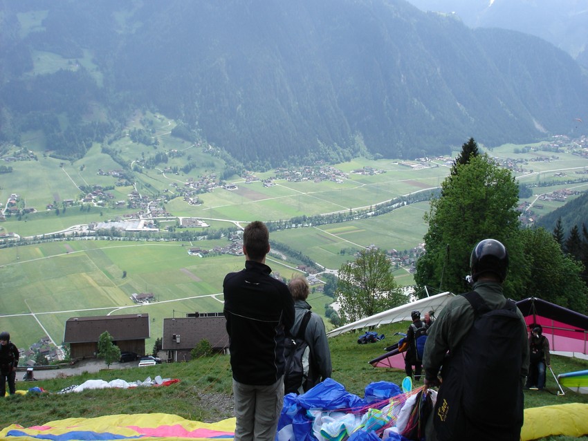 Zunächst fahren wir einmal zur Flugschule in Mayrhofen, die uns aber vom Fliegen abrät. Trotzdem fahren wir ein Stück weg vom Hauptkamm nach Fügen, um es hier zu probieren. |
