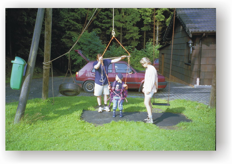 Schaukel aufgehängt und mit Gleitschirmbremsen ausgerüstet. Dort konnten sich