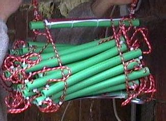 aber genialen Lösung. Er besorgte sich Kunststoffrohre und Reebschnur, bohrte an jedem Ende des |