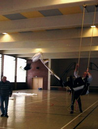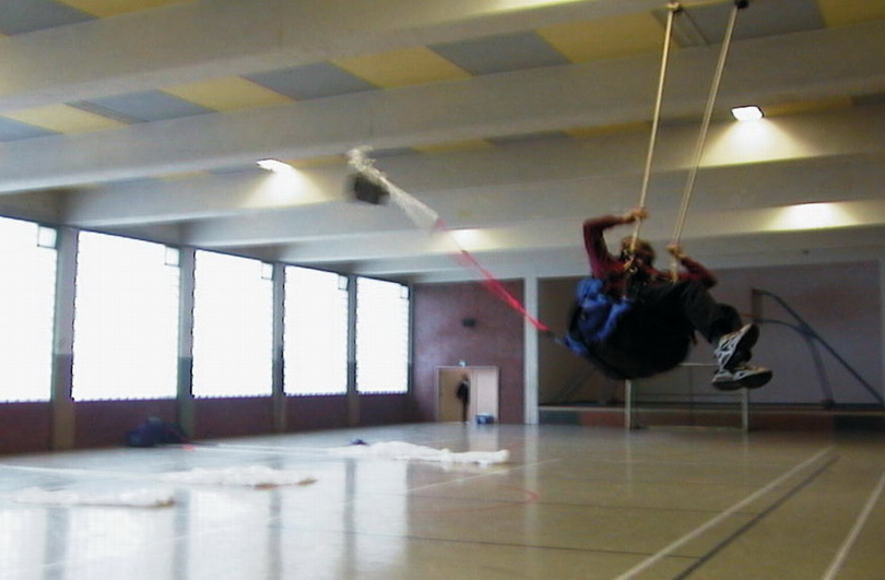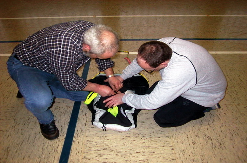 Anschließend begannen wir mit dem Neupacken. Wie in den besuchten Packerlehrgängen des DHV gelernt, werden Rettungsschirme immer von 2 Piloten zusammen gepackt, um Fehler oder Unsicherheiten Einzelner zu verhindern bzw. auszu- schalten. Alles klappte zur