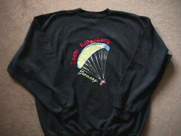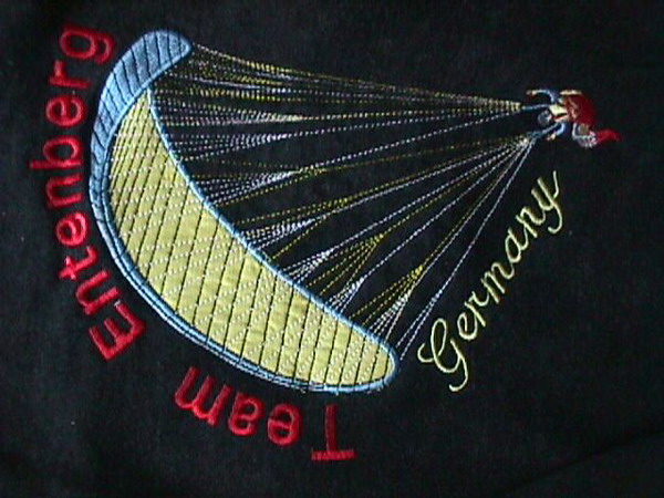 Vereinstextilien können bei entsprechender Abnahmemenge mit unserem Entenberg-Rückenstich und dem runden Vereinslogo bestickt werden. |